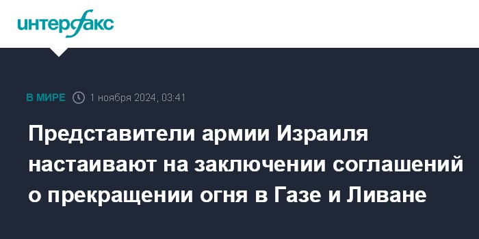 Представители армии Израиля настаивают на заключении соглашений о прекращении огня в Газе и Ливане