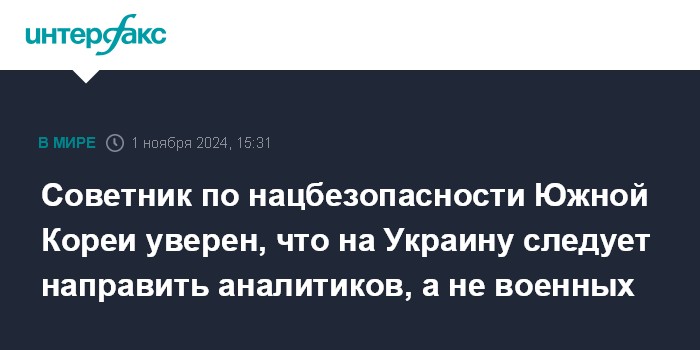 Советник по нацбезопасности Южной Кореи уверен, что на Украину следует направить аналитиков, а не военных