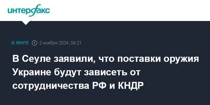 В Сеуле заявили, что поставки оружия Украине будут зависеть от сотрудничества РФ и КНДР