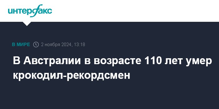 Москва. 2 ноября. INTERFAX.RU - Умер самый крупный в мире крокодил, содержащийся в неволе, сообщил в соцсетях австралийский заповедник Парк крокодилов Маринленд (Marineland Melanesia Crocodile Habitat).