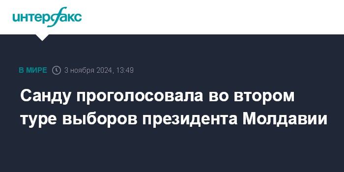 Москва. 3 ноября. INTERFAX.RU - Кандидат на пост президента Молдавии, действующий президент Майя Санду приняла участие в голосовании во втором туре президентских выборов.