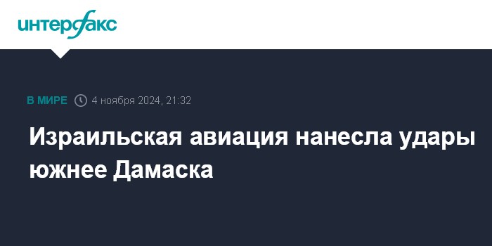 Москва. 4 ноября. INTERFAX.RU - ВВС Израиля в понедельник вечером атаковали ряд целей к югу от Дамаска, сообщает агентство САНА со ссылкой на военный источник.