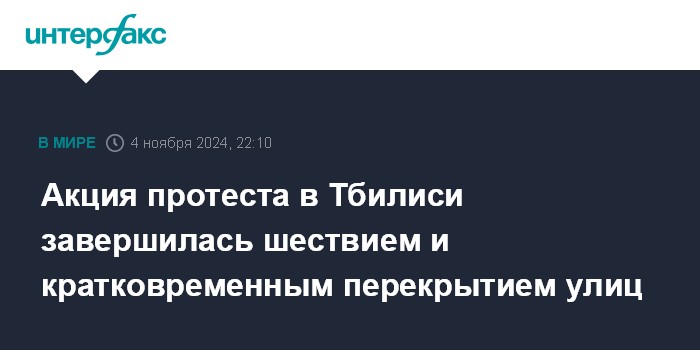 Москва. 4 ноября. INTERFAX.RU - В Тбилиси завершилась без инцидентов акция протеста оппозиционных партий, не признающих представленные Центральной избирательной комиссией Грузии результаты прошедших 26 октября парламентских выборов.
