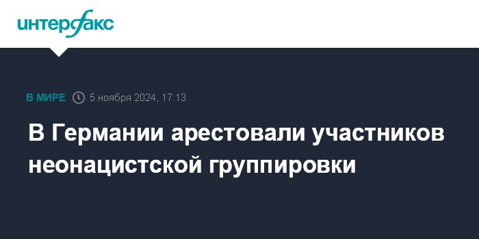 Москва. 5 ноября. INTERFAX.RU - Полиция в Германии во вторник арестовала восемь предполагаемых участников неонацистской группировки "Саксонские сепаратисты", их подозревают в заговоре с целью организации переворота в восточной части страны.