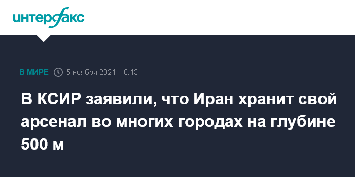В КСИР заявили, что Иран хранит свой арсенал во многих городах на глубине 500 м