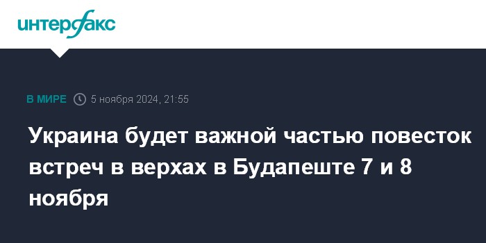 Украина будет важной частью повесток встреч в верхах в Будапеште 7 и 8 ноября