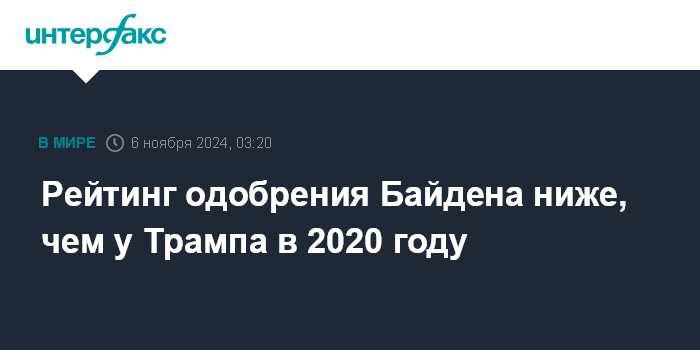 Рейтинг одобрения Байдена ниже, чем у Трампа в 2020 году