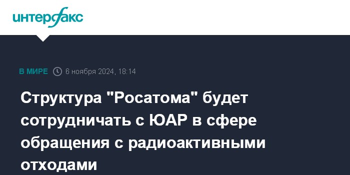 Структура "Росатома" будет сотрудничать с ЮАР в сфере обращения с радиоактивными отходами
