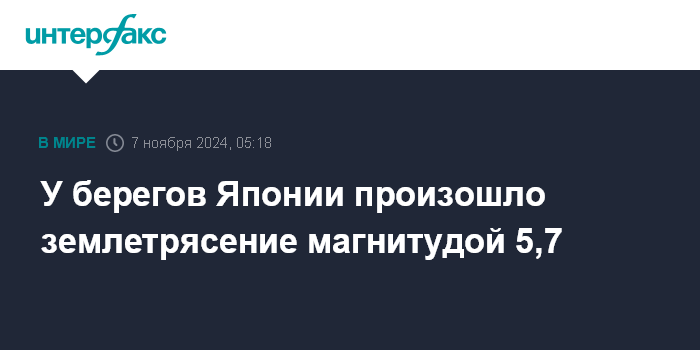 У берегов Японии произошло землетрясение магнитудой 5,7