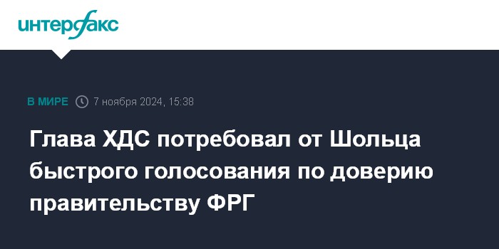 Глава ХДС потребовал от Шольца быстрого голосования по доверию правительству ФРГ