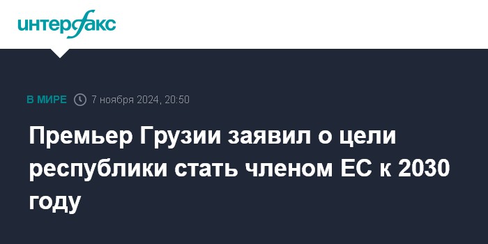 Москва. 7 ноября. INTERFAX.RU - Премьер-министр Грузии Ираклий Кобахидзе заявил о цели республики стать к 2030 году членом Евросоюза.