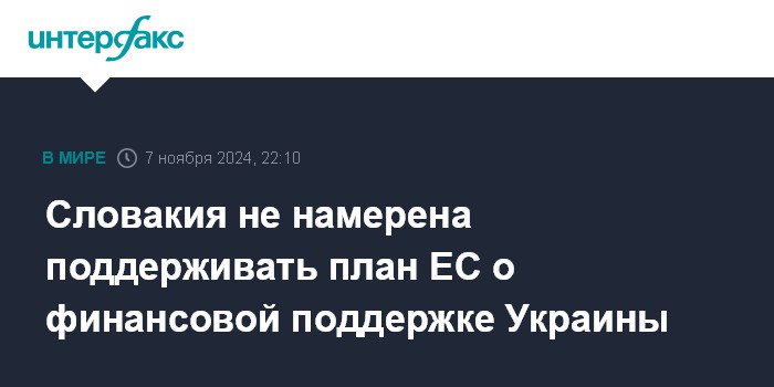 "Некоторые представители ЕС говорят, что Европа возьмет на себя полную финансовую ответственность за Украину. Я считаю это невозможным, и Словакия не даст на это согласия", - цитирует в четверг ЭФЭ слова главы словацкого правительства.