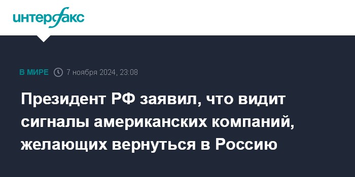 Москва. 7 ноября. INTERFAX.RU - От американских компаний начали поступать сигналы о желании вернуться на российский рынок, они смогут это сделать, но не без потерь, заявил президент РФ Владимир Путин.