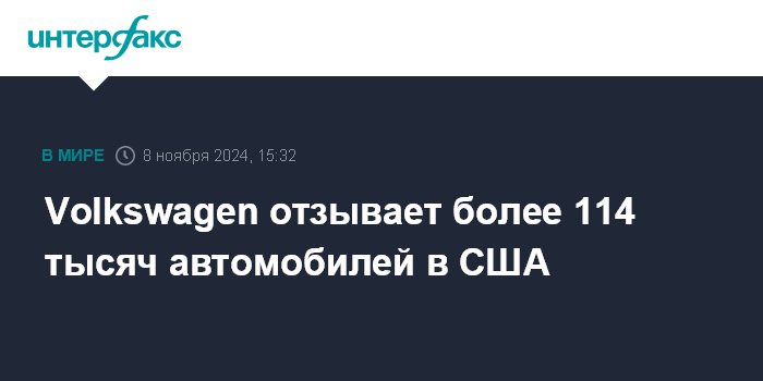 Volkswagen отзывает более 114 тысяч автомобилей в США