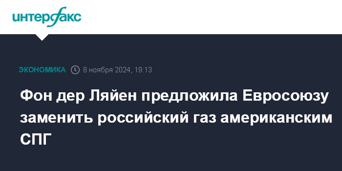 Фон дер Ляйен предложила Евросоюзу заменить российский газ американским СПГ