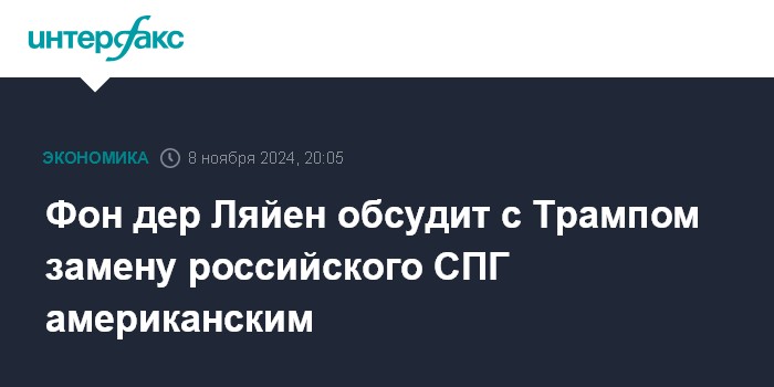 Фон дер Ляйен обсудит с Трампом замену российского СПГ американским