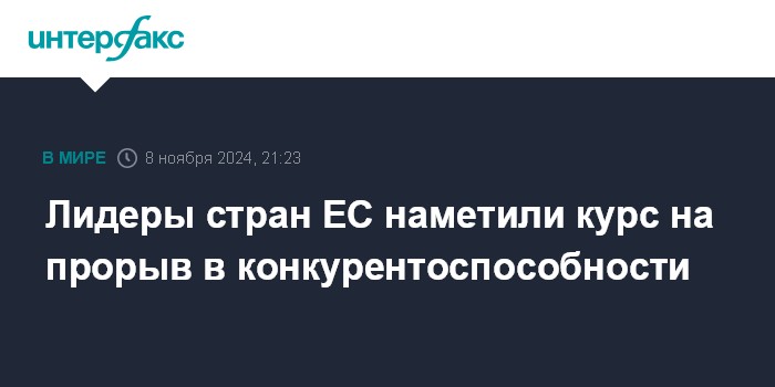 "Крайне важно, чтобы мы срочно закрыли разрыв в инновациях и производительности как с нашими глобальными конкурентами, так и в самом ЕС. Мы будем работать в единстве и солидарности на благо всех граждан ЕС, предприятий и государств-членов", - говорится в принятой декларации "О новом соглашении о европейской конкурентоспособности".