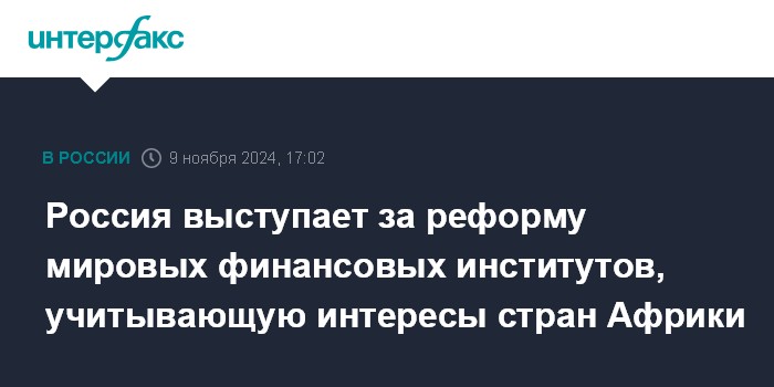 Россия выступает за реформу мировых финансовых институтов, учитывающую интересы стран Африки