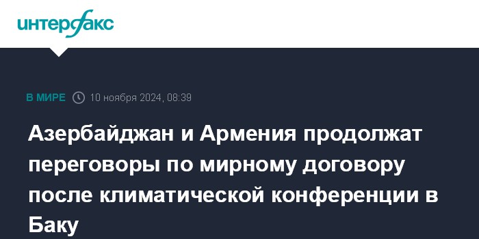 Азербайджан и Армения продолжат переговоры по мирному договору после климатической конференции в Баку
