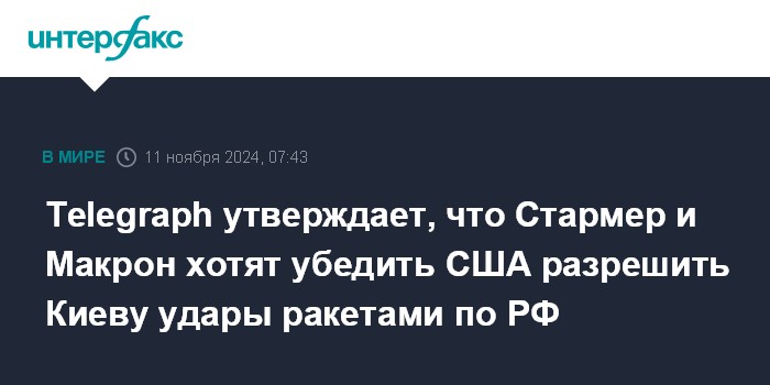 Telegraph утверждает, что Стармер и Макрон хотят убедить США разрешить Киеву удары ракетами по РФ