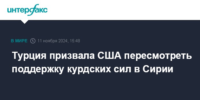 Москва. 11 ноября. INTERFAX.RU - Анкара настаивает, чтобы США изменили свою позицию в отношении курдских сил в Сирии, заявил в понедельник глава МИД Турции Хакан Фидан.