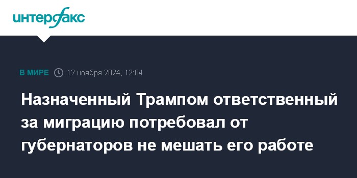 Назначенный Трампом ответственный за миграцию потребовал от губернаторов не мешать его работе