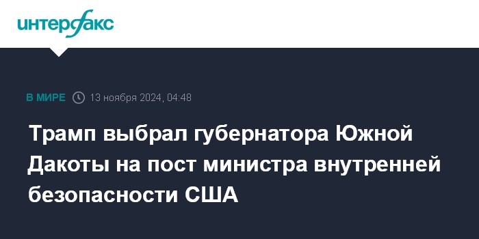 Трамп выбрал губернатора Южной Дакоты на пост министра внутренней безопасности США