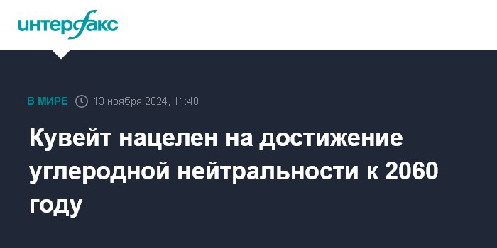 Москва. 13 ноября. INTERFAX.RU - Кувейт хочет достичь углеродной нейтральности к 2060 году, заявил кронпринц Кувейта Сабах аль-Халид ас-Сабах, выступая на саммите лидеров в рамках климатической конференции COP29 в Баку.