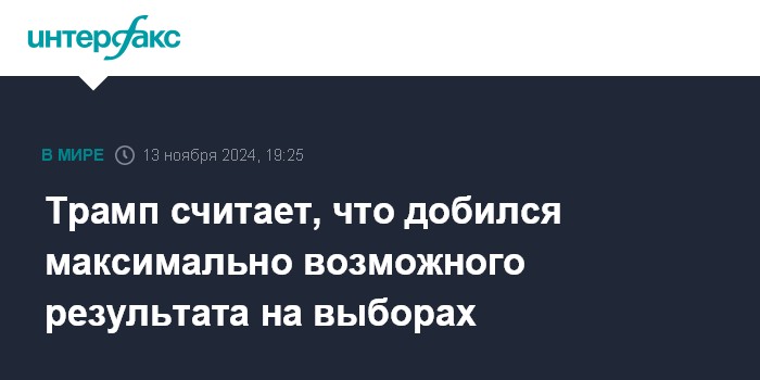 Выборы президента Соединенных Штатов состоялись 5 ноября. По их итогам Трамп получил 312 голосов выборщиков при необходимых 270. У его оппонентки, демократки Камалы Харрис - 226 голосов.