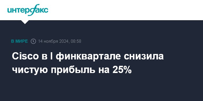 Москва. 14 ноября. INTERFAX.RU - Американский производитель сетевого оборудования Cisco Systems Inc. в первом квартале 2025 финансового года сократил чистую прибыль на четверть, но дал сильный годовой прогноз.