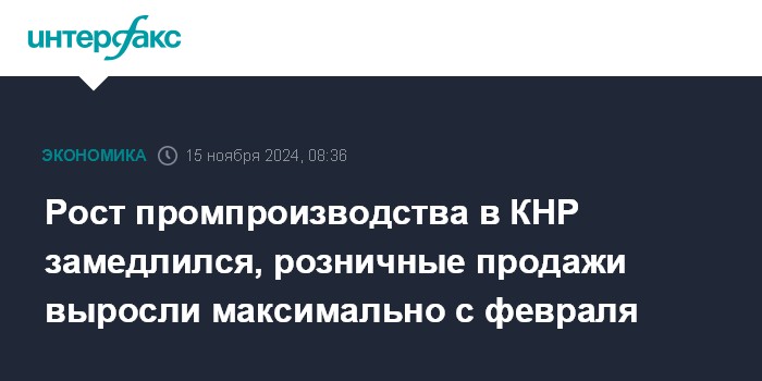 Рост промпроизводства в КНР замедлился, розничные продажи выросли максимально с февраля