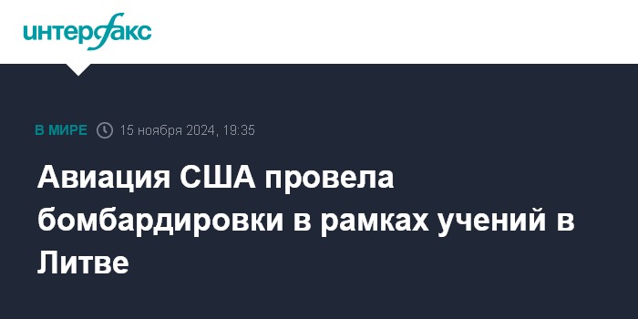 "15 ноября на полигоне в Казлу-Руде (город в юго-западной Литве, близ границы с Калининградской областью РФ - ИФ) проведено уничтожение наземных целей воздушными ударами с высоты порядка 6 километров. Американские стратегические бомбардировщики дальнего действия B-52 "Stratfortress" сбросили наводящиеся лазером управляемые бомбы, итальянские истребители EF2000 "Eurofighter" вели прямой обстрел ракетами", - говорится в сообщении.