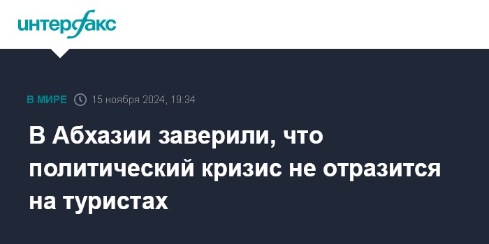 Москва. 15 ноября. INTERFAX.RU - В Министерстве туризма Абхазии заверили, что внутриполитические процессы, происходящие в республике, никак не отразятся на отдыхе туристов.