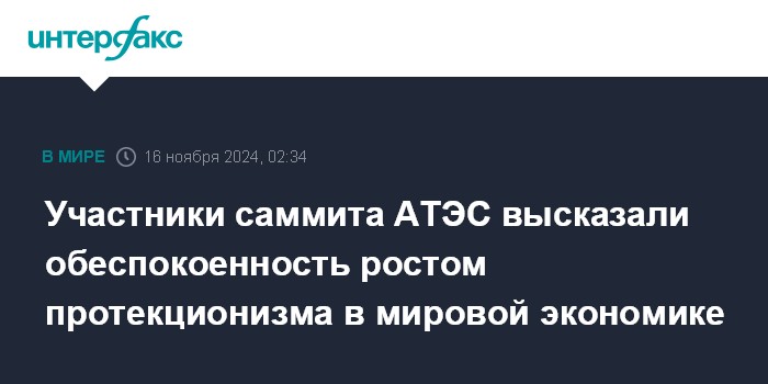 Москва. 16 ноября. INTERFAX.RU - Лидеры экономик стран-участниц форума АТЭС высказали обеспокоенность усилением протекционизма в международной торговле, сообщил журналистам вице-премьер РФ Алексей Оверчук.
