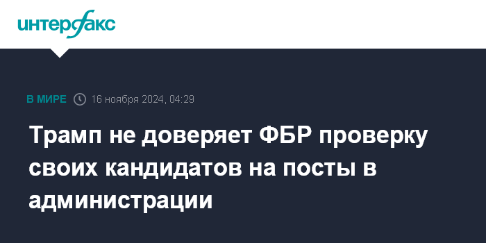 "Трамп и его союзники считают, что система ФБР работает медленно (...), это может помешать избранному президенту быстро начать работу", - говорится в сообщении.