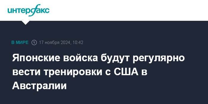 Москва. 17 ноября. INTERFAX.RU - Военные Японии начнут на регулярной основе отправляться в Дарвин на севере Австралии для совместного обучения с австралийскими и американскими военнослужащими, заявил австралийский министр обороны Ричард Марлз.