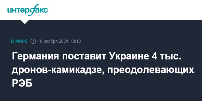 "Писториус подтвердил, что Германия начнет поэтапно поставлять Украине 4 тыс. дронов-камикадзе немецкого производства", - сообщает агентство.