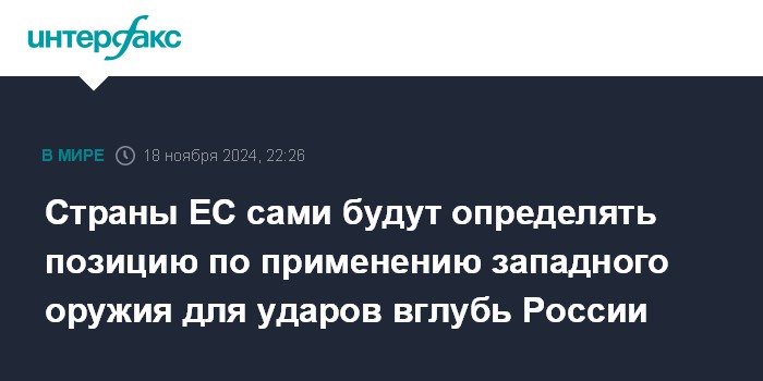 Страны ЕС сами будут определять позицию по применению западного оружия для ударов вглубь России