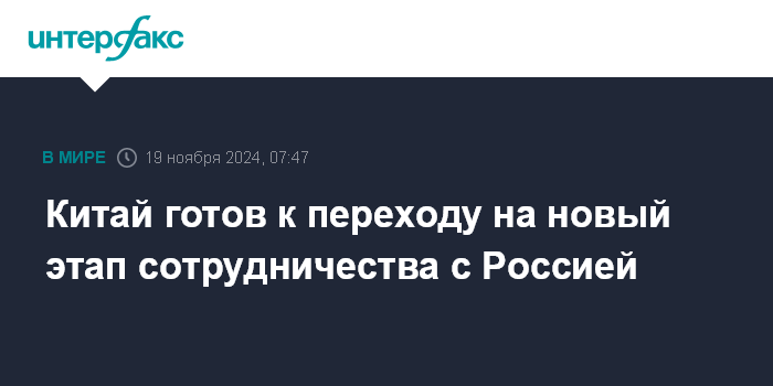 Китай готов к переходу на новый этап сотрудничества с Россией