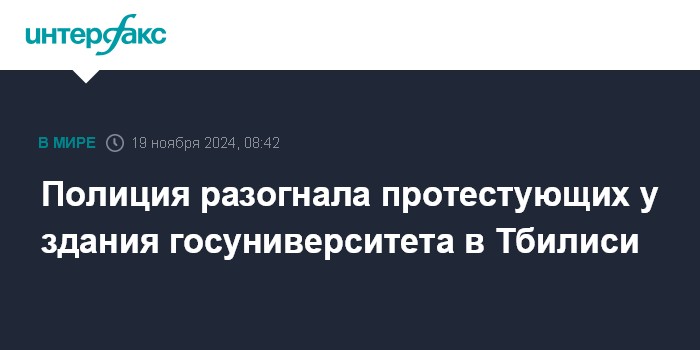 Москва. 19 ноября. INTERFAX.RU - Полиция в Тбилиси разогнала протестующих у здания госуниверситета, противостояние между несколькими десятками оппозиционеров и полицейскими продолжается в эти часы на проспекте Меликишвили, сообщают грузинские СМИ.