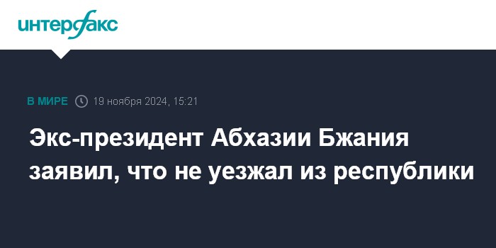 Москва. 19 ноября. INTERFAX.RU - Ушедший досрочно в отставку с должности президента Абхазии Аслан Бжания опровергает сообщения телеграм-каналов о том, что он якобы выехал из республики в Сочи.