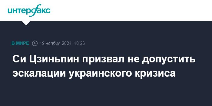"Китай не хочет видеть ни распространения кризиса, ни эскалации конфликта", - подчеркнул Си Цзиньпин.