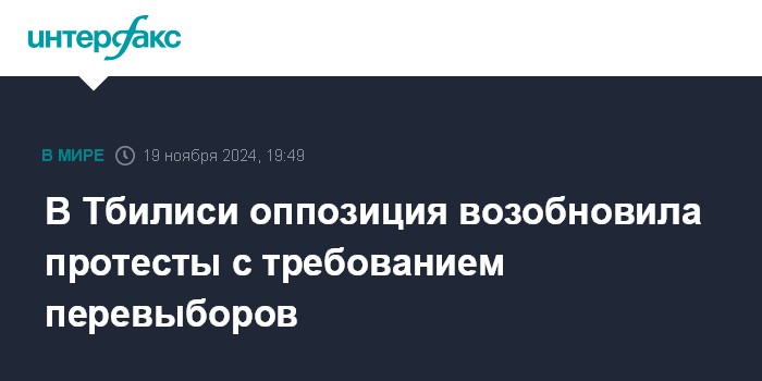 Москва. 19 ноября. INTERFAX.RU - В Тбилиси во вторник вечером оппозиция возобновила акцию протеста против результатов выборов в парламент Грузии.