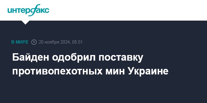 Москва. 20 ноября. INTERFAX.RU - Президент США Джо Байден одобрил поставку Украине противопехотных мин, сообщает The Washington Post со ссылкой на осведомленные источники.