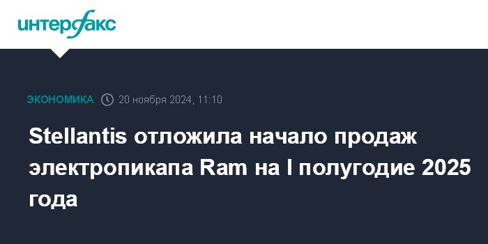 Москва. 20 ноября. INTERFAX.RU - Европейская группа Stellantis переносит старт продаж электрического пикапа Ram с 2024 года на первое полугодие 2025 года и продолжает испытания автомобиля, передает CNBC.