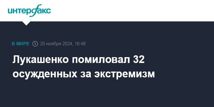Москва. 20 ноября. INTERFAX.RU - Президентом Белоруссии Александром Лукашенко помилованы более 30 человек, осужденных за совершение экстремистских преступлений. Об этом сообщил близкий к пресс-службе главы государства телеграм-канал "Пул Первого" в среду.