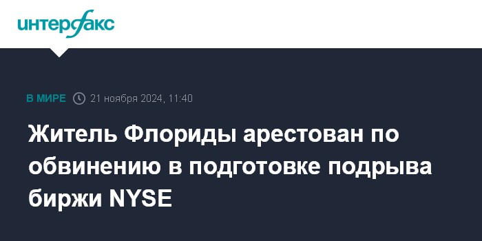 Житель Флориды арестован по обвинению в подготовке подрыва биржи NYSE