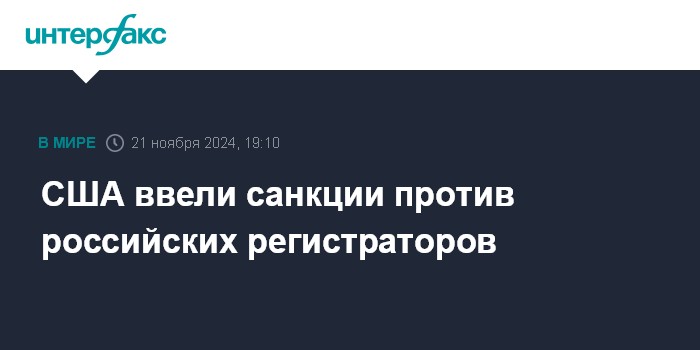 Москва. 21 ноября. INTERFAX.RU - Управление по контролю за зарубежными активами Минфина США (OFAC) включило в санкционный список более 40 российских регистраторов, следует из сообщения ведомства.