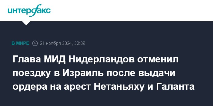 Глава МИД Нидерландов отменил поездку в Израиль после выдачи ордера на арест Нетаньяху и Галанта