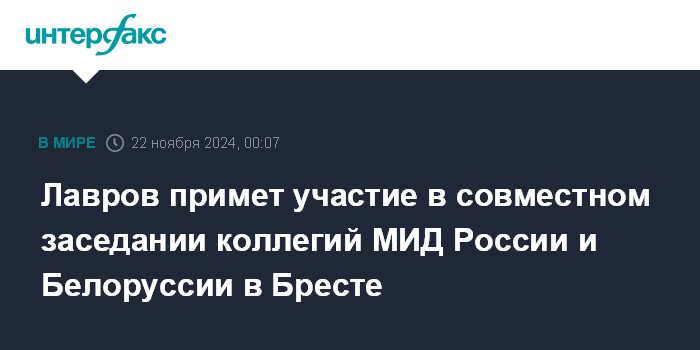 Лавров примет участие в совместном заседании коллегий МИД России и Белоруссии в Бресте